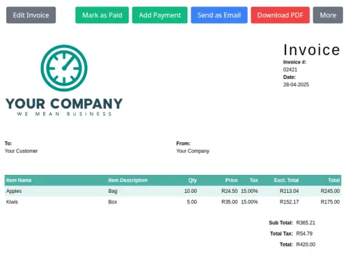 A simple yet intuitive interface for creating invoices in just a few minutes. Includes optional tax and discount calculations.