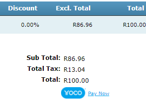 You can now include a "Pay Now" button directly on your invoices that will take users to a secure online payment page with Yoco. Accept online card payments for any Visa or MasterCard cards.