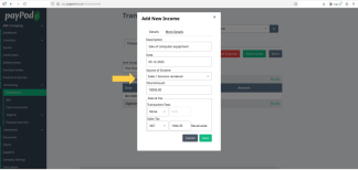 - Fill in a description, select the exact date the transaction happened, and choose a suitable Source of Income.